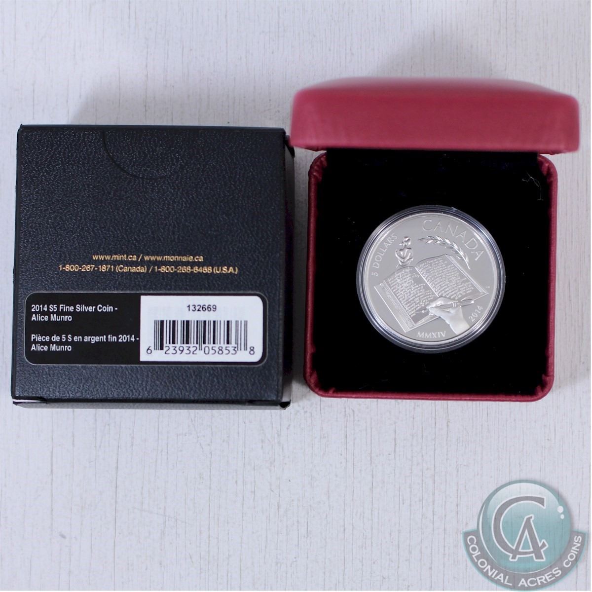 RCM Issue: 2014 Canada $5 Alice Munro Fine Silver Coin (Outer sleeve has light dent on one corner) (TAX Exempt)