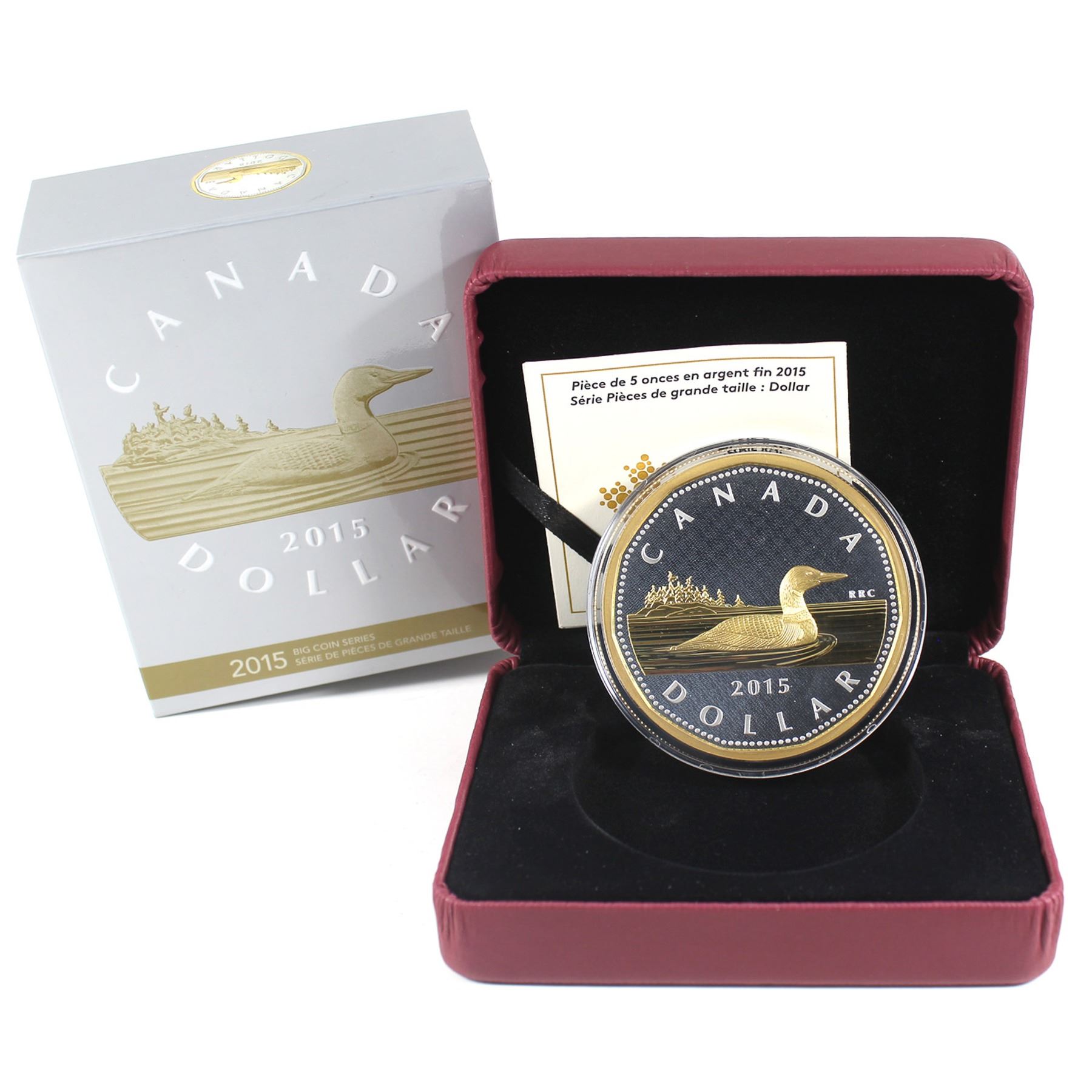 RCM Issue: 2015 $1 Gold Plated Big Coin 5oz Fine Silver Loon Coin (TAX Exempt). 1st Big Coin Issued!