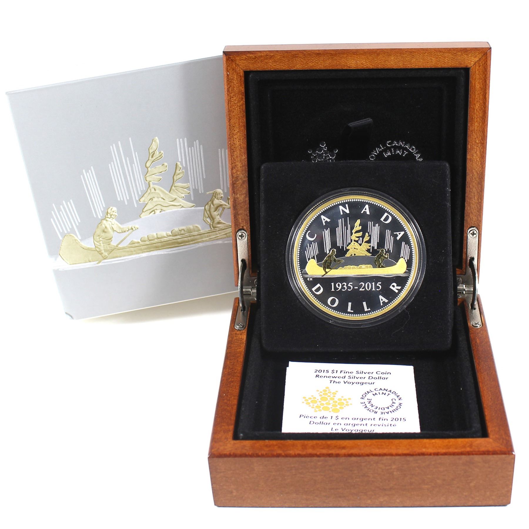 RCM Issue: 2015 $1 The Voyageur Renewed Fine Silver Dollar with Selective Gold Plating (TAX Exempt). This is the 1st of the Master Club Members Released Dollar Series.