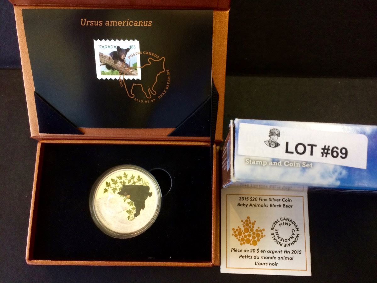 RCM Issue: 2015 20$ Fine Silver The Black Bear Stamp and Coin set, No Tax C.O.A & Box
