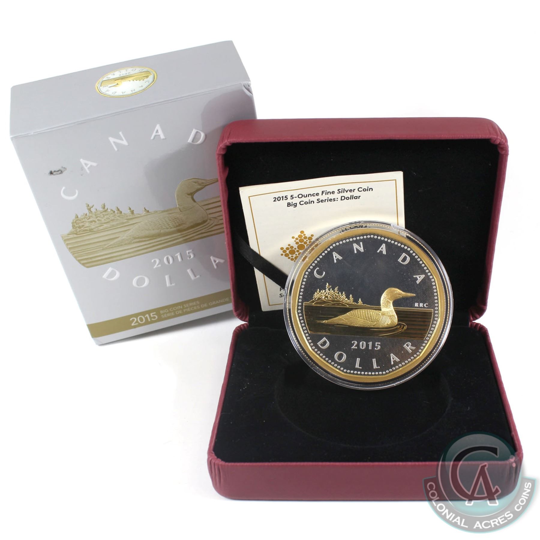 RCM Issue: 2015 Canada $1 Gold Plated Big Coin 5oz Fine Silver Coin (residue on outer sleeve) Tax Exempt
