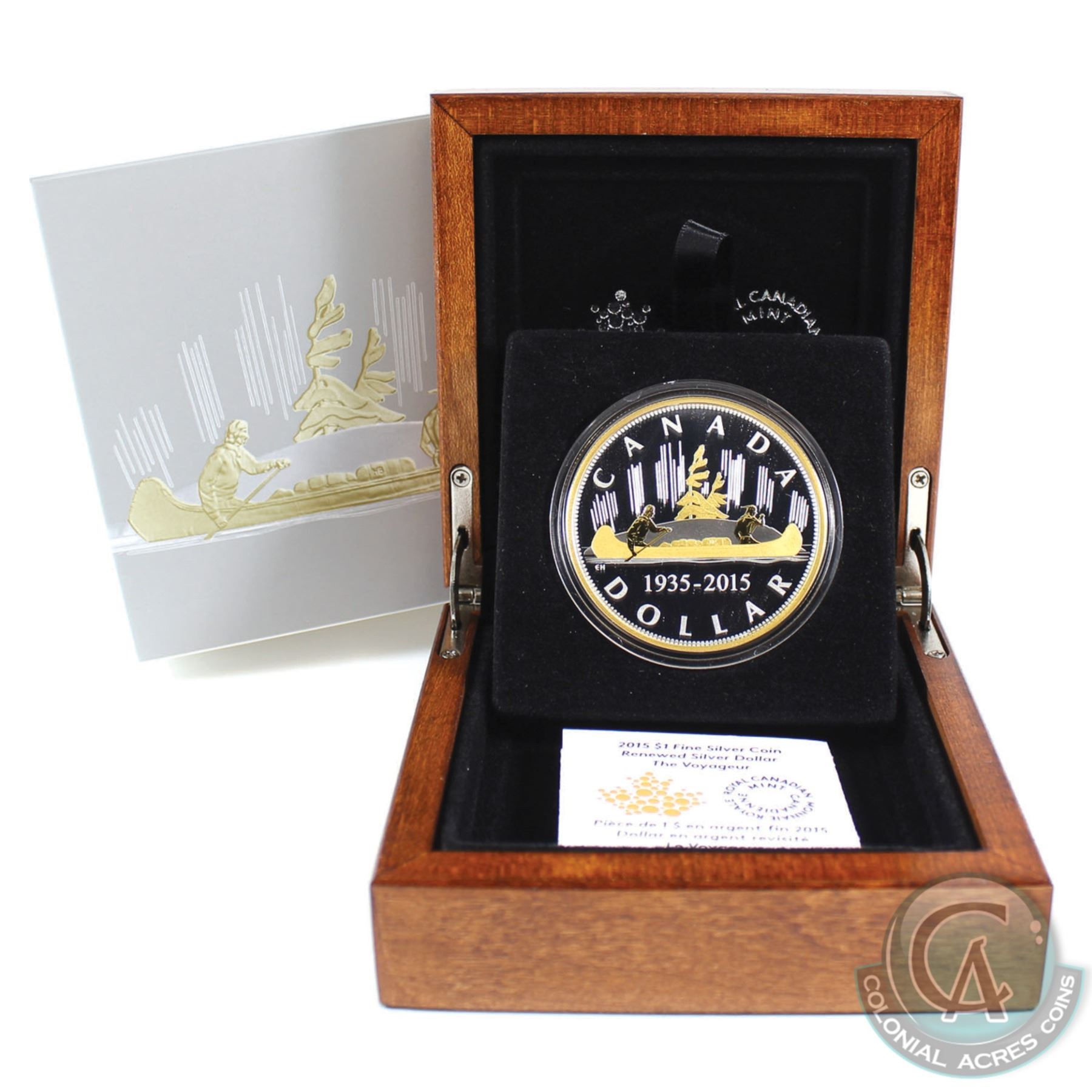 RCM Issue: 2015 Canada $1 The Voyageur Renewed Silver Dollar Fine Silver (light scuff on back of capsule). Tax Exempt