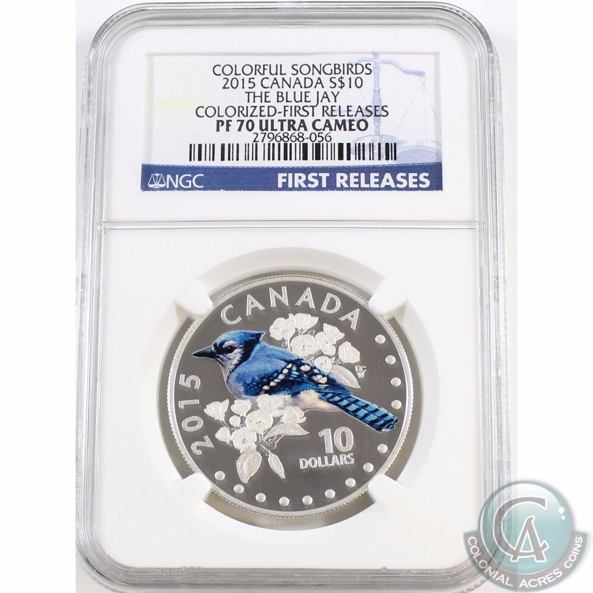 RCM Issue: 2015 Canada $10 Colourful Songbirds - The Blue Jay NGC Certified PF-70 Ultra Cameo First Releases (Tax Exempt)