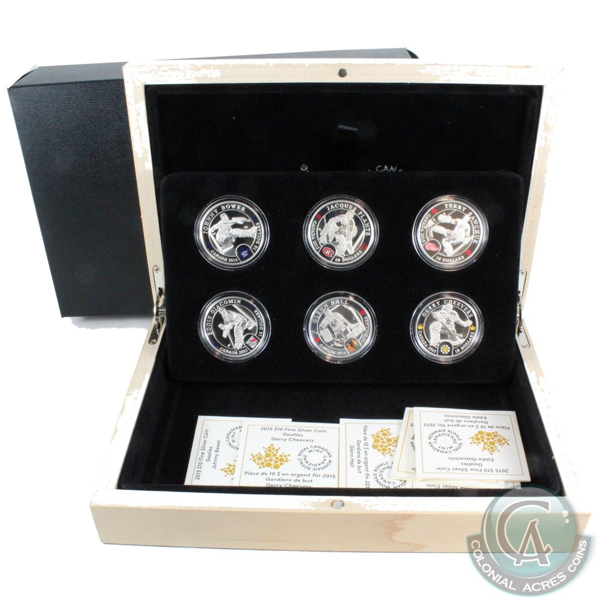 RCM Issue: 2015 Canada $10 Fine Silver NHL Goalies 6-coin subscription set in Deluxe Wooden display box. (TAX Exempt)