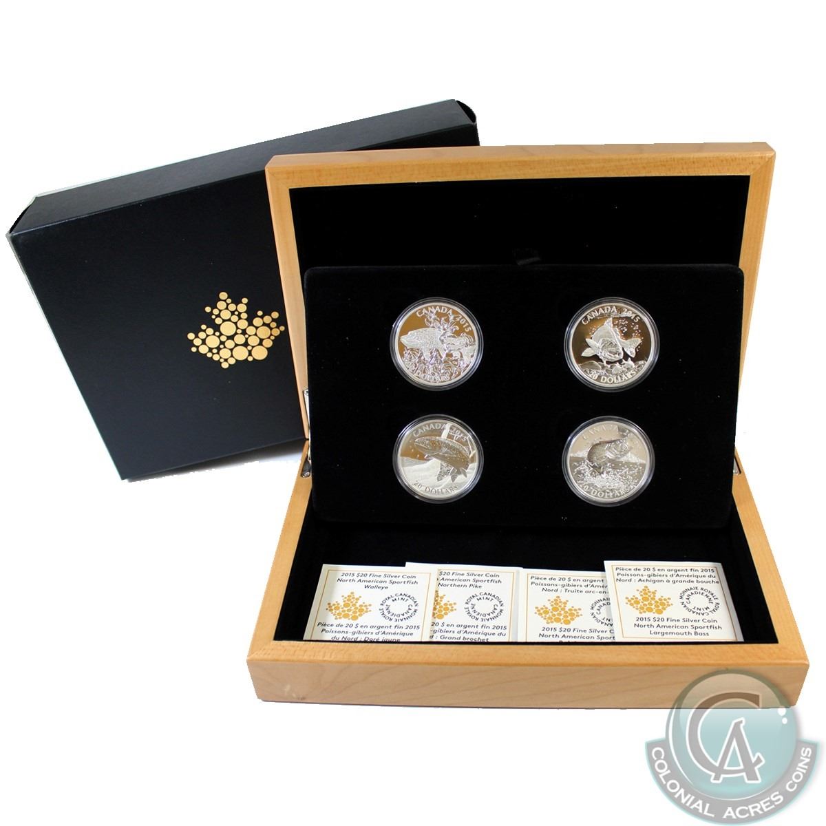 RCM Issue: 2015 Canada $20 American Sportfish 4-Coin Fine Silver Set in Deluxe Case (Tax Exempt)
