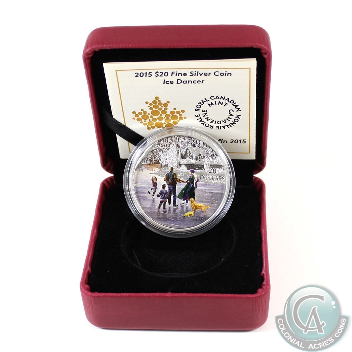 RCM Issue: 2015 Canada $20 Ice Dancer Fine Silver Coin. Comes encapsulated in maroon RCM display box with COA (TAX Exempt)