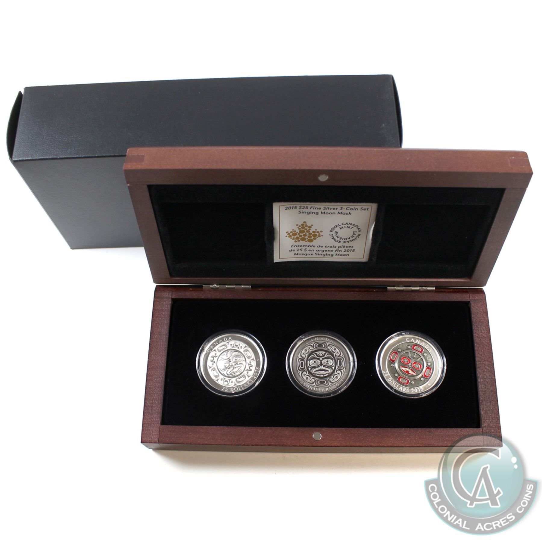 RCM Issue: 2015 Canada $25 Singing Moon Mask Fine Silver 3-coin Set (Tax Exempt).