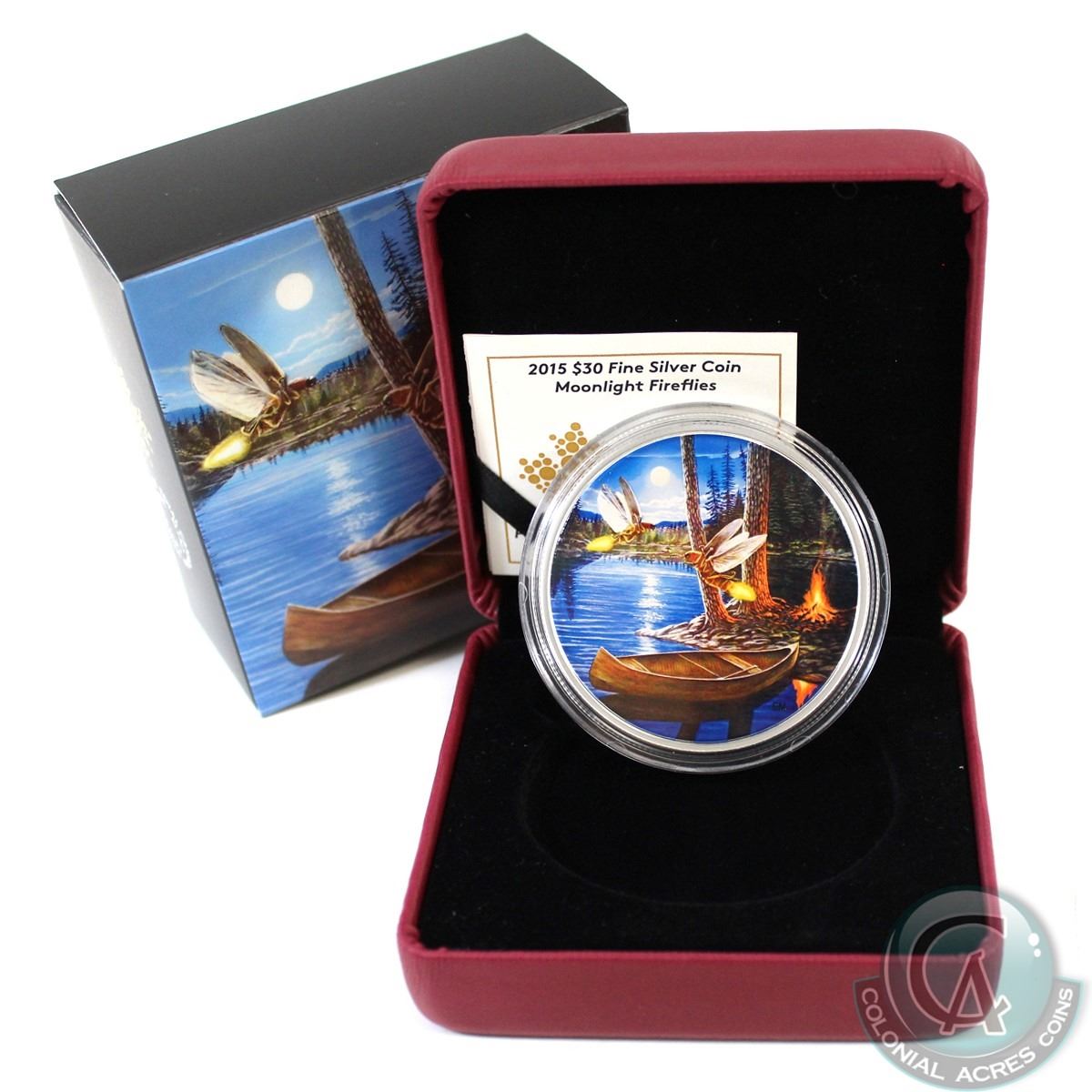 RCM Issue: 2015 Canada $30 Moonlight Fireflies Fine Silver Coin (TAX Exempt). Coin comes with all Original Packaging.
