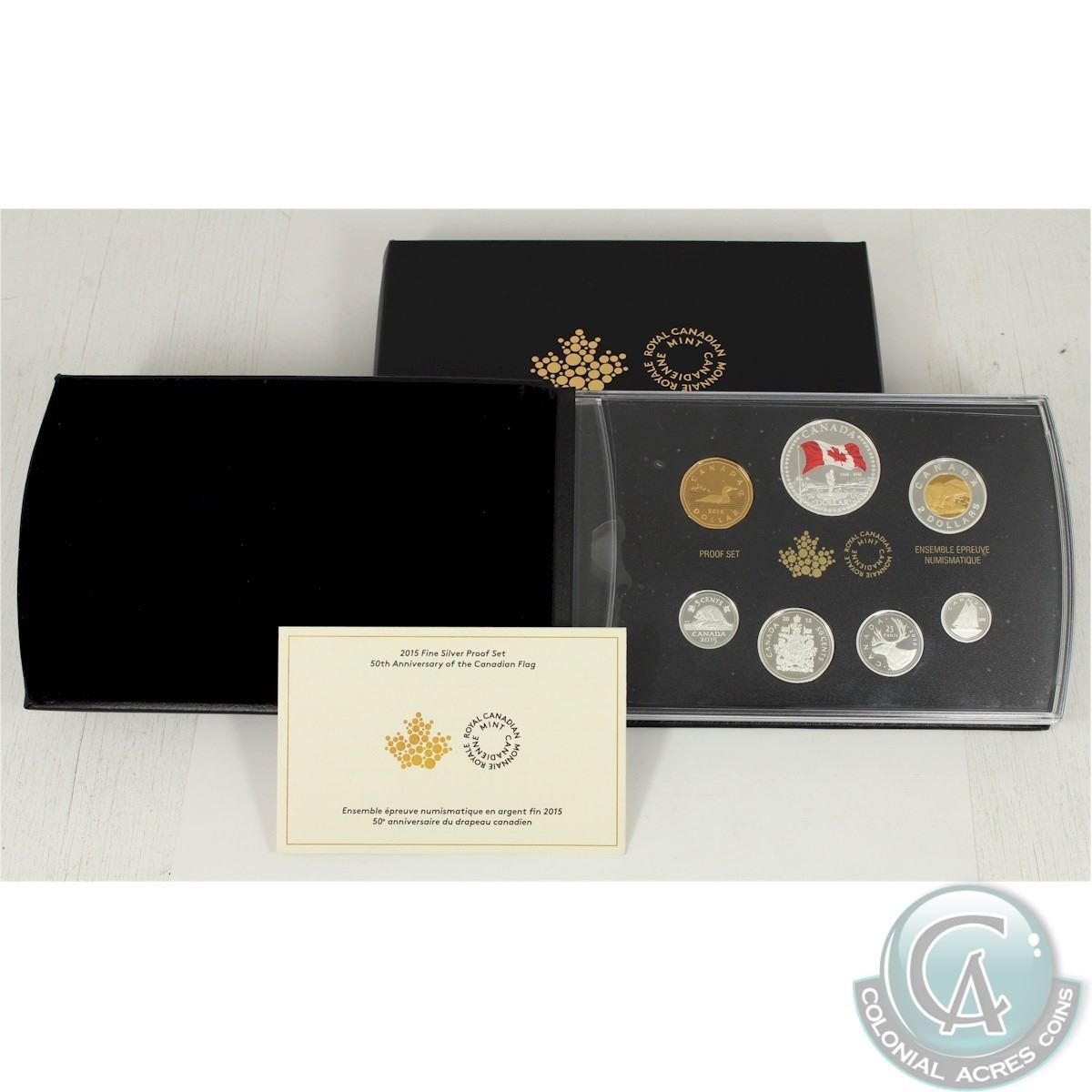 RCM Issue; 2015 Coloured 50th Anniversary Canada Flag Fine Silver Proof Set (Tax Exempt).