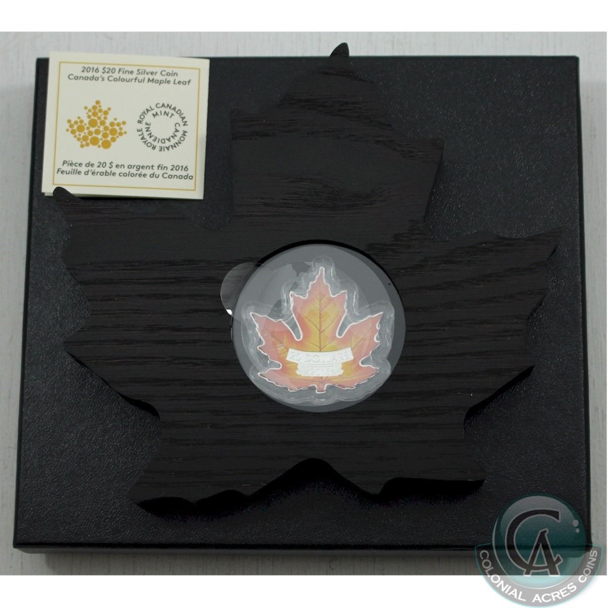 RCM Issue: 2016 $20 Canada's Colourful Maple Leaf Shaped Fine Silver Coin (TAX Exempt)