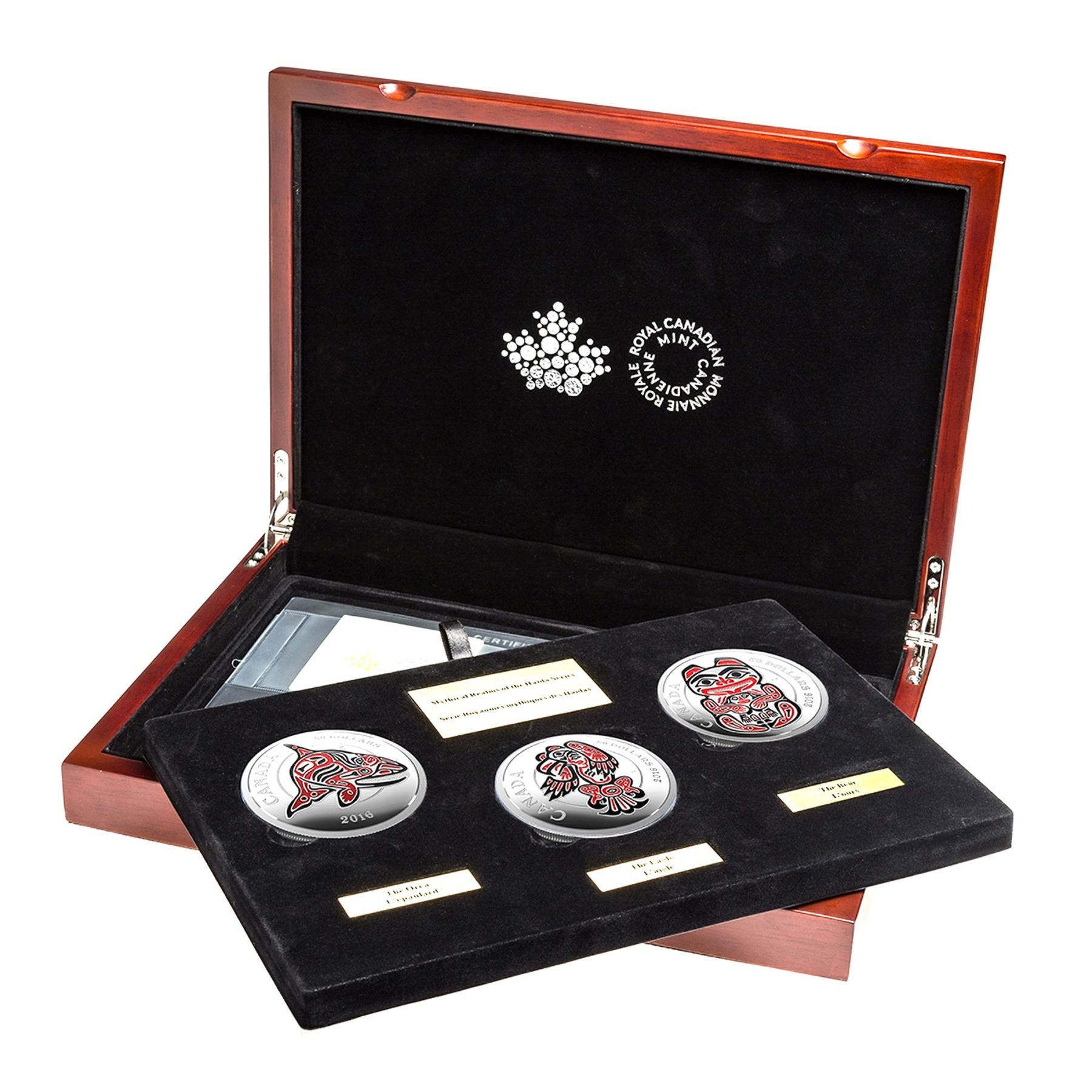 RCM Issue: 2016 5oz Mythical Realms of the Haida 3-coin Fine Silver Set (capsules are scratched). TAX Exempt