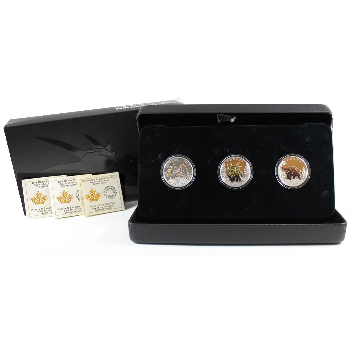RCM Issue: 2016 Canada $10 Day of the Dinosaurs Fine Silver 3-coin Fine Silver Set (TAX Exempt)