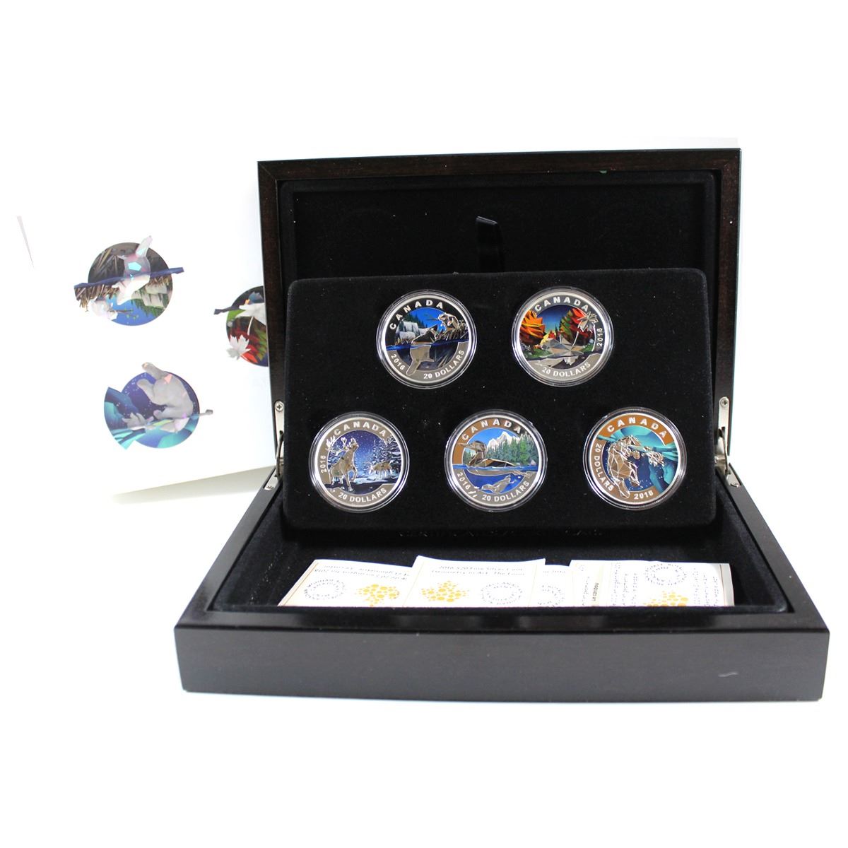 RCM Issue: 2016 Canada $20 Geometry In Art 5-coin Set in Deluxe Display Case (outer sleeve has small tear & the Maple Leaf coin is toned). TAX Exempt