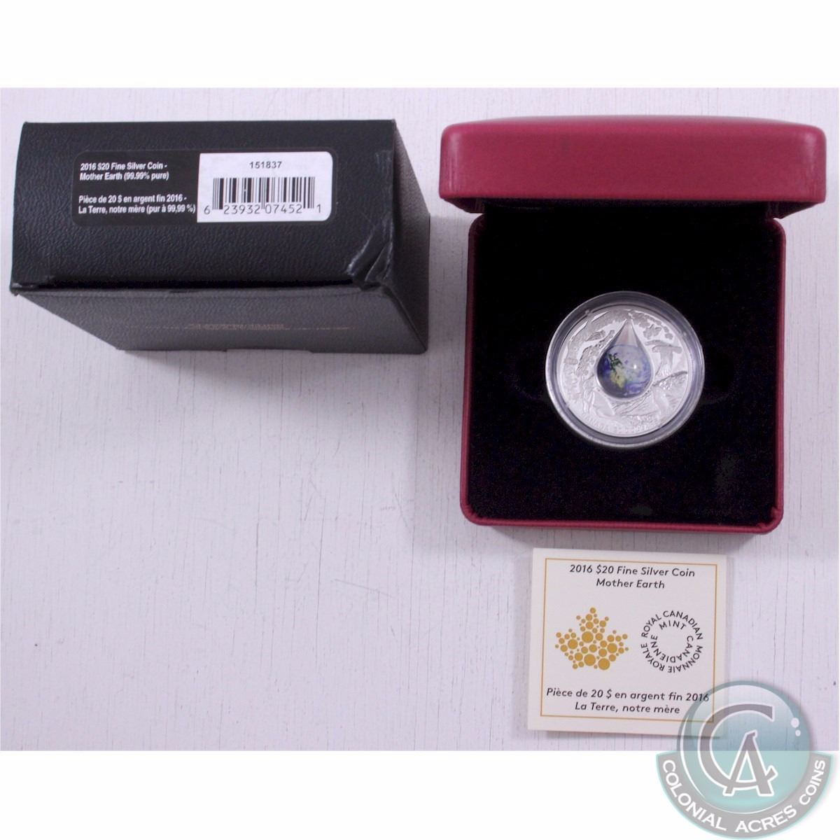 RCM Issue: 2016 Canada $20 Mother Earth Fine Silver Coin (TAX Exempt). Coin comes with all original mint packaging. (outer box has a dent in one corner)