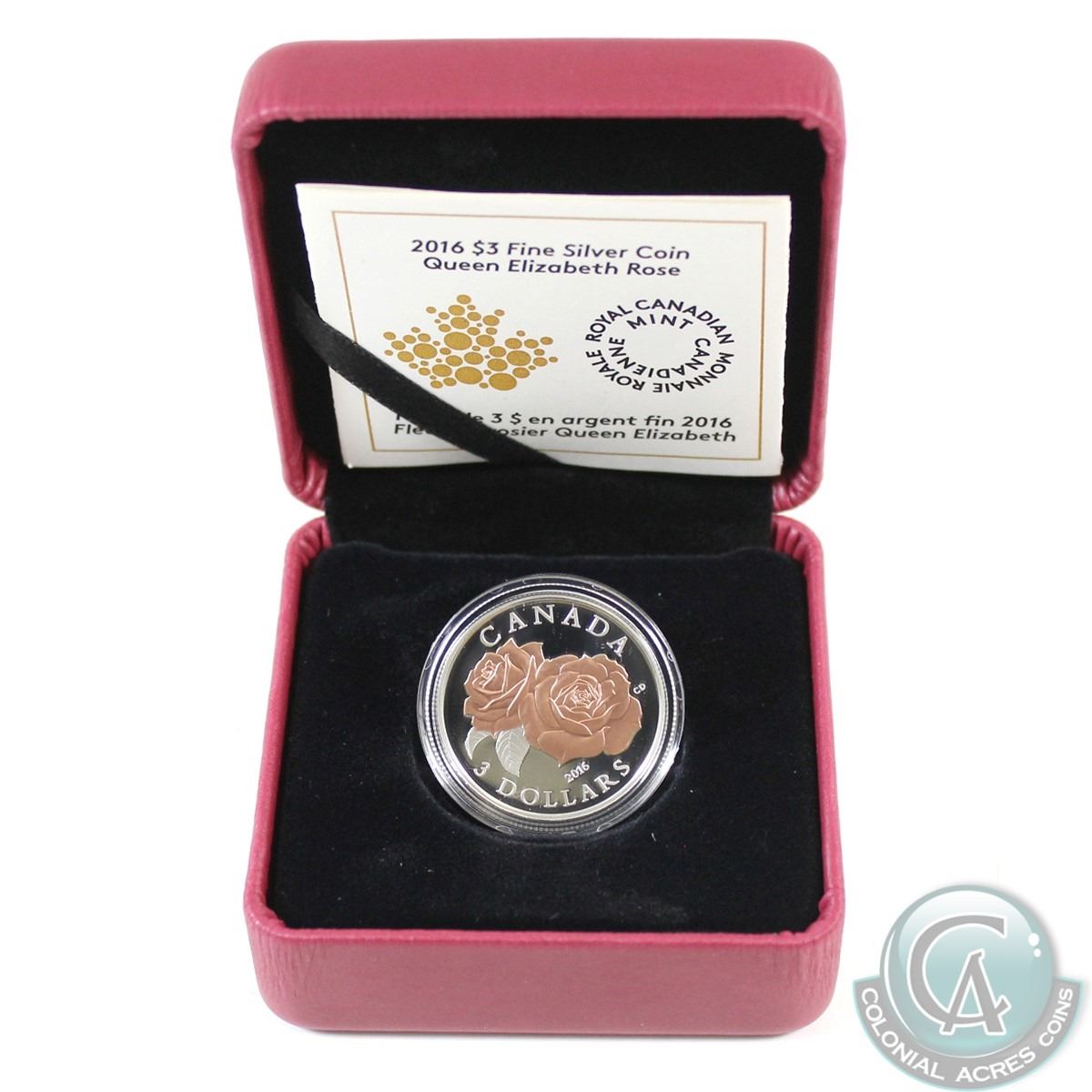 RCM Issue: 2016 Canada $3 Queen Elizabeth Rose with Selective Rose Gold Plating Fine Silver Coin (Missing outer sleeve) (TAX Exempt)