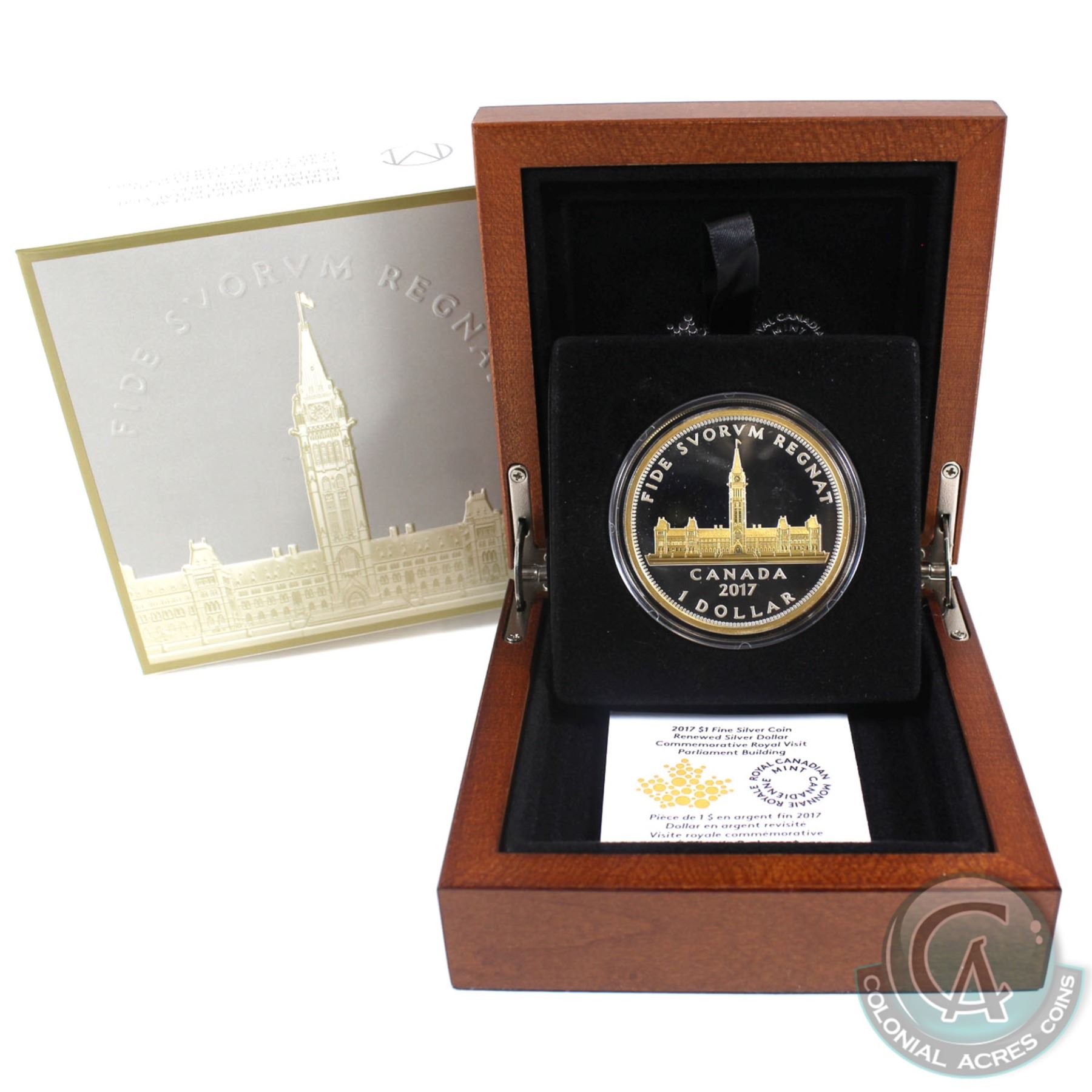 RCM Issue: 2017 Canada $1 Commemorative Royal Visit - Parliament Building Fine Silver Dollar (sleeve has some discolouring) Tax Exempt.