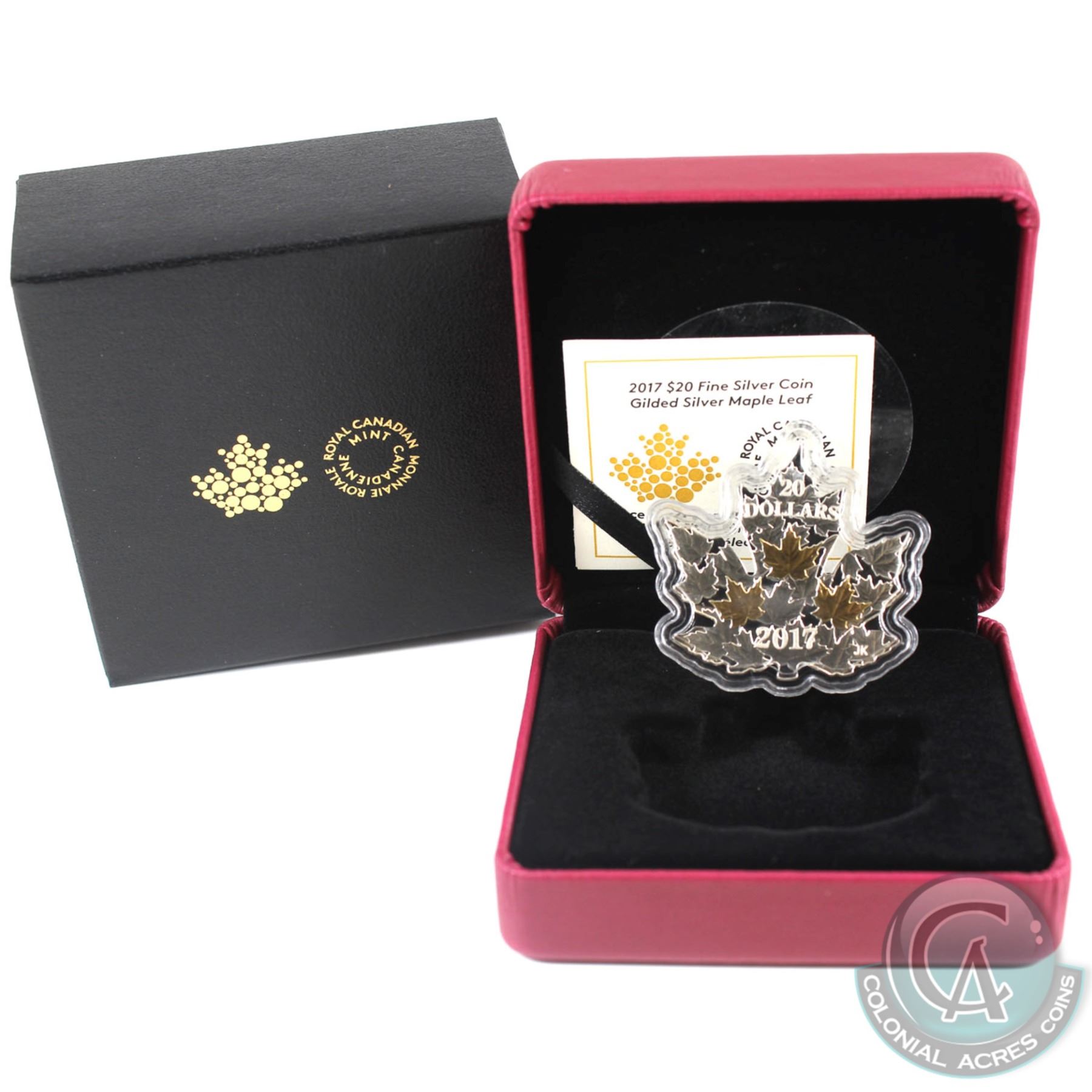 RCM Issue: 2017 Canada $20 Gilded Silver Maple Leaf Shaped Fine Silver Coin (Tax Exempt).