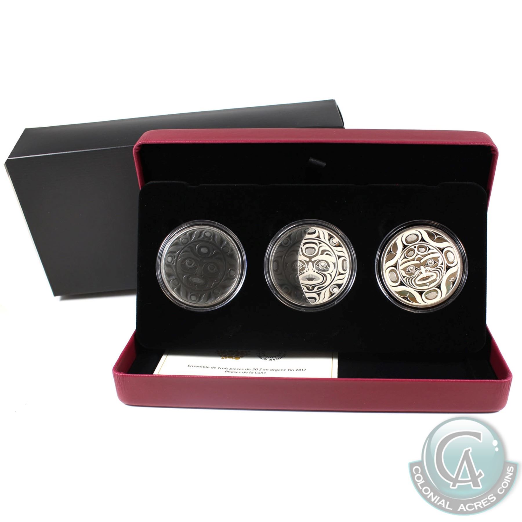RCM Issue: 2017 Canada $25 3-Phases of the Moon Fine Silver 3-coin Set (outer sleeve lightly bent) Tax Exempt.