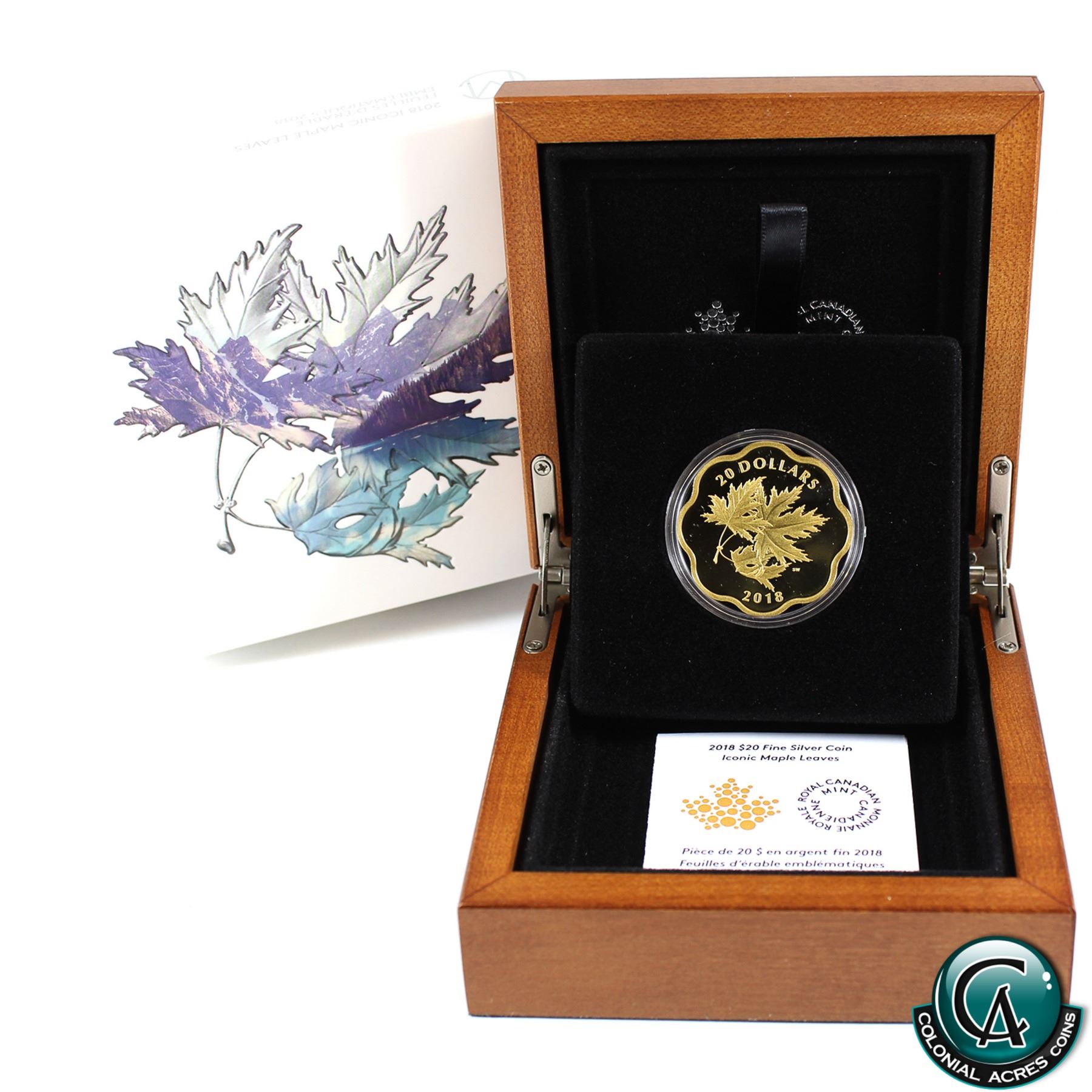 RCM Issue: 2018 Canada $20 Iconic Maple Leaves Fine Silver Coin (Sleeve lightly scuffed). Tax Exempt