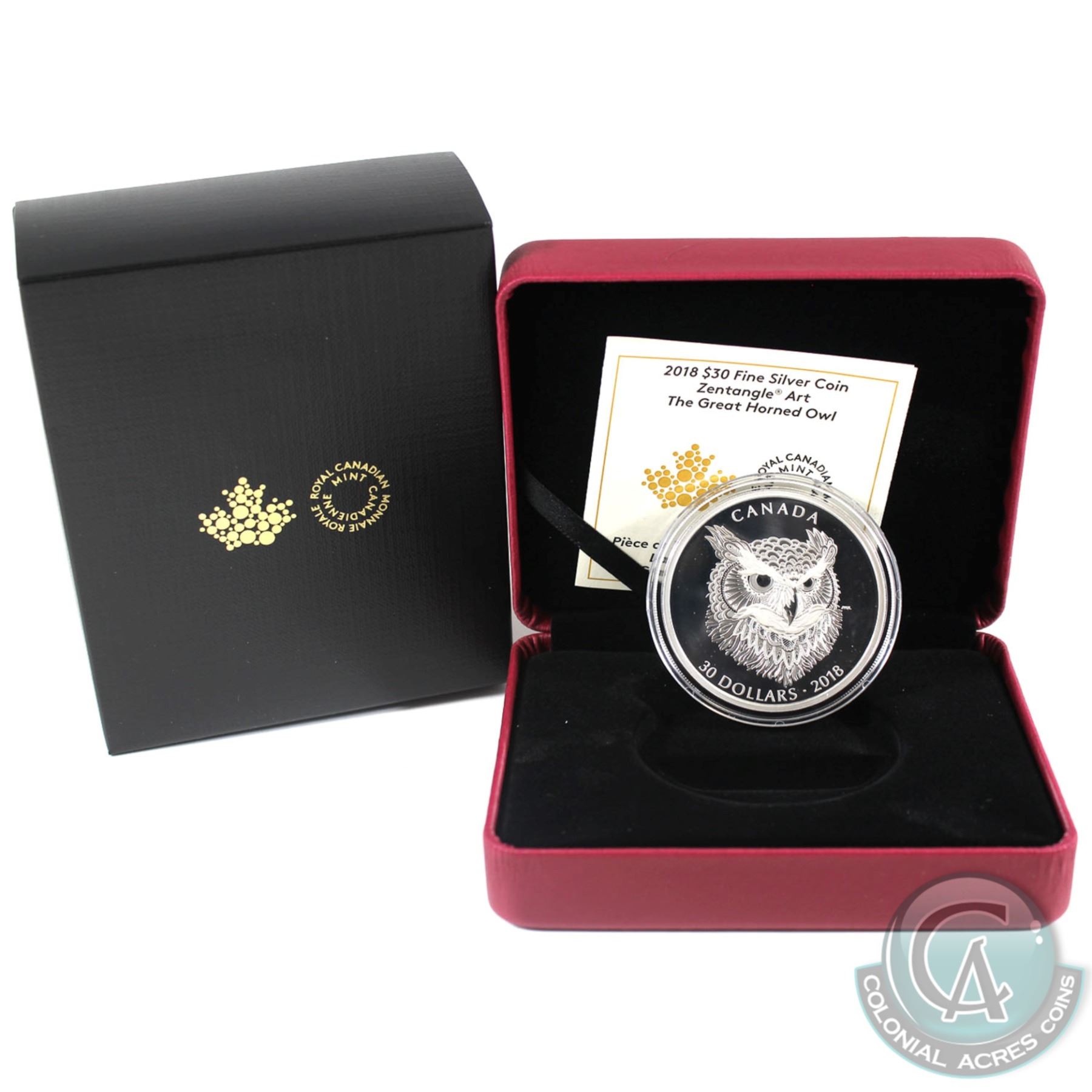 RCM Issue: 2018 Canada $30 Zentangle Art - The Great Horned Owl Fine Silver Coin (Tax Exempt).