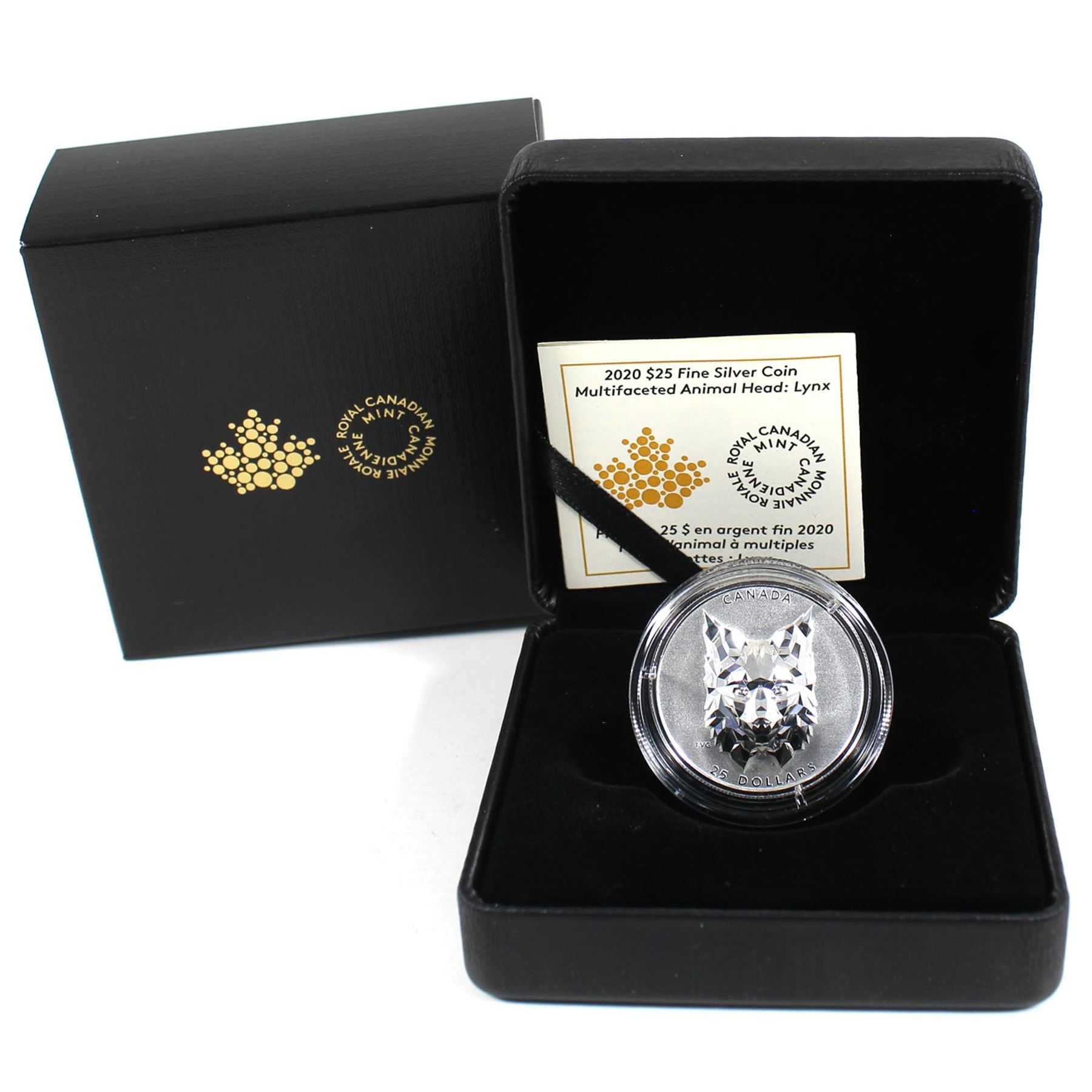 RCM Issue: 2020 $25 Multifaceted Animal Head - Lynx Fine Silver Coin (TAX Exempt).