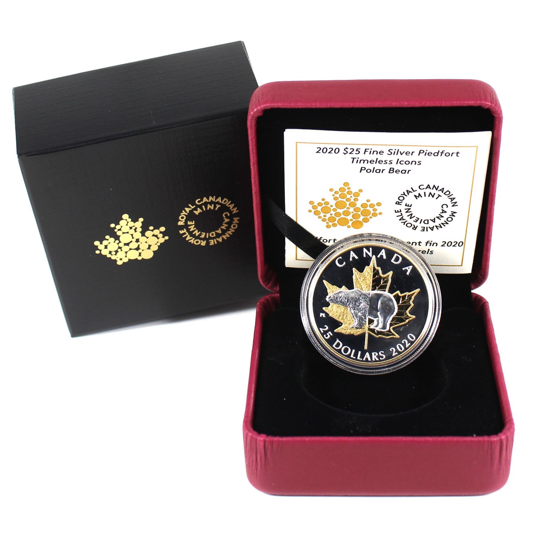 RCM Issue: 2020 $25 Piedfort - Timeless Icons Polar Bear Fine Silver Coin with selective Gold plating (TAX Exempt).