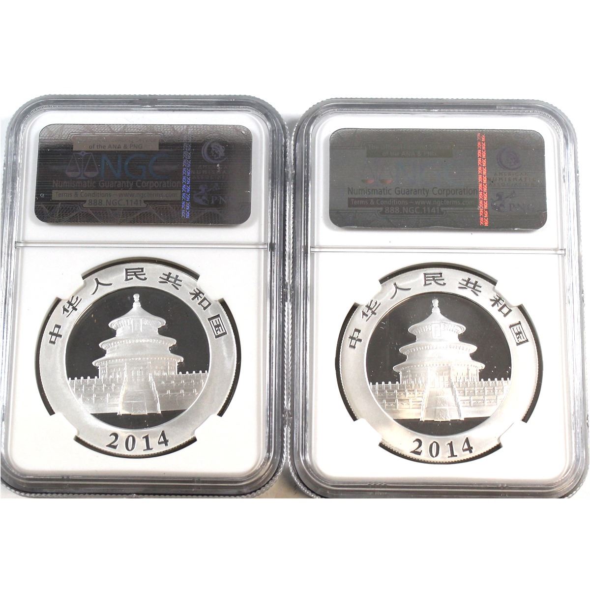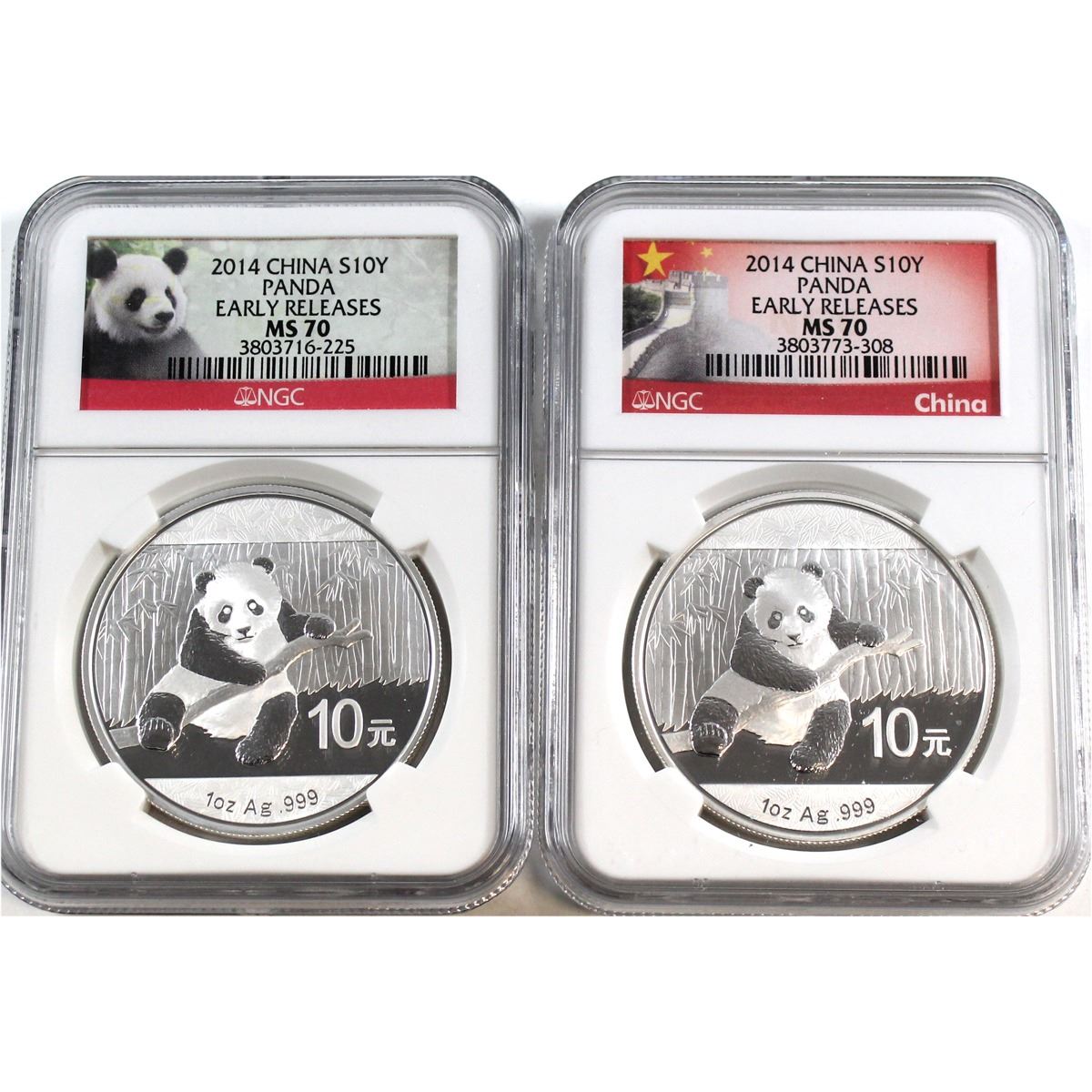RCM Issue: 2x 2014 China Panda 1oz Fine Silver NGC Certified MS-70 Early Releases (TAX Exempt). 2pcs