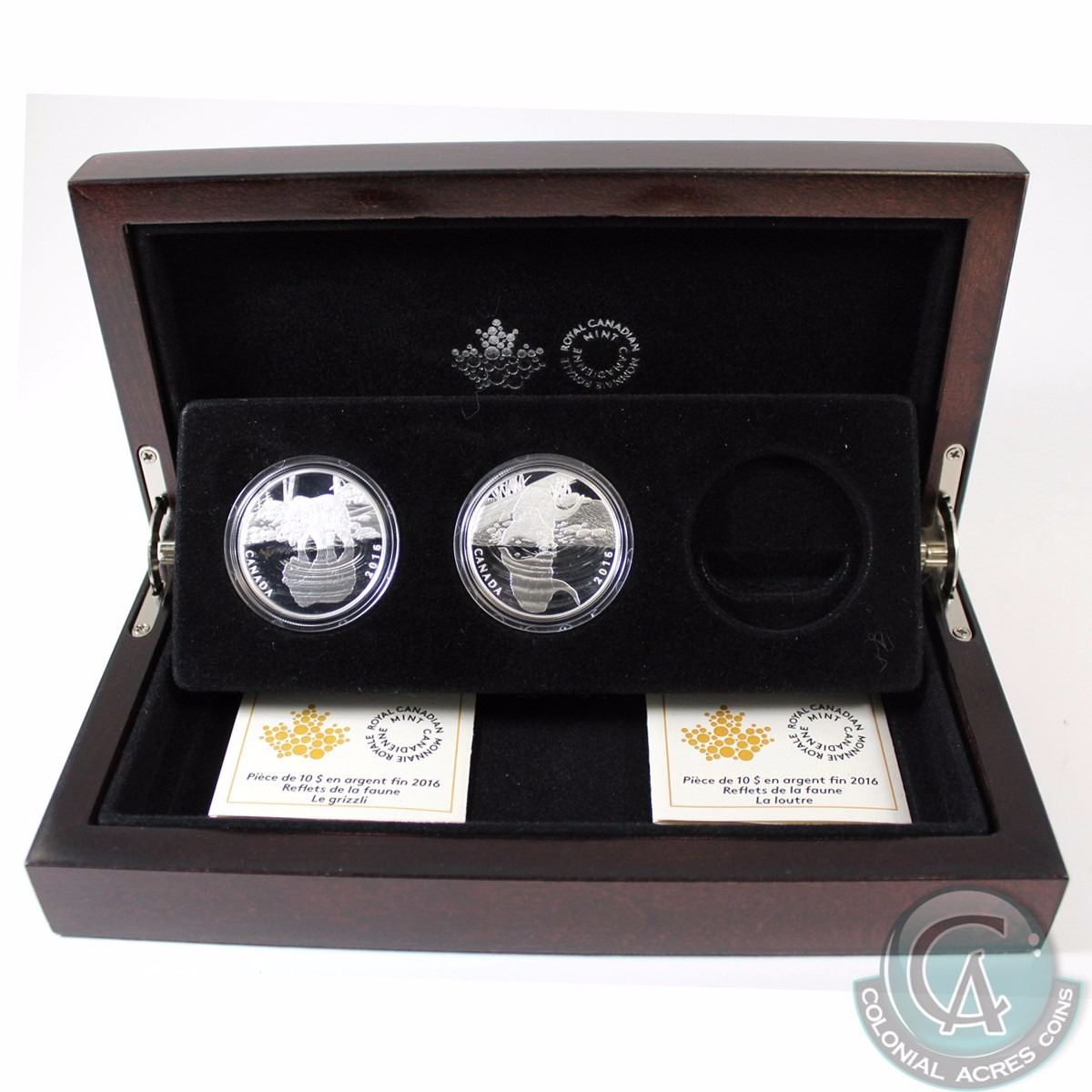 RCM Issue: 2x 2016 Canada $10 Reflections of Wildlife Fine Silver Coins in Original Display Case with COAs. You will receive the Otter & the Grizzly Bear (TAX Exempt)