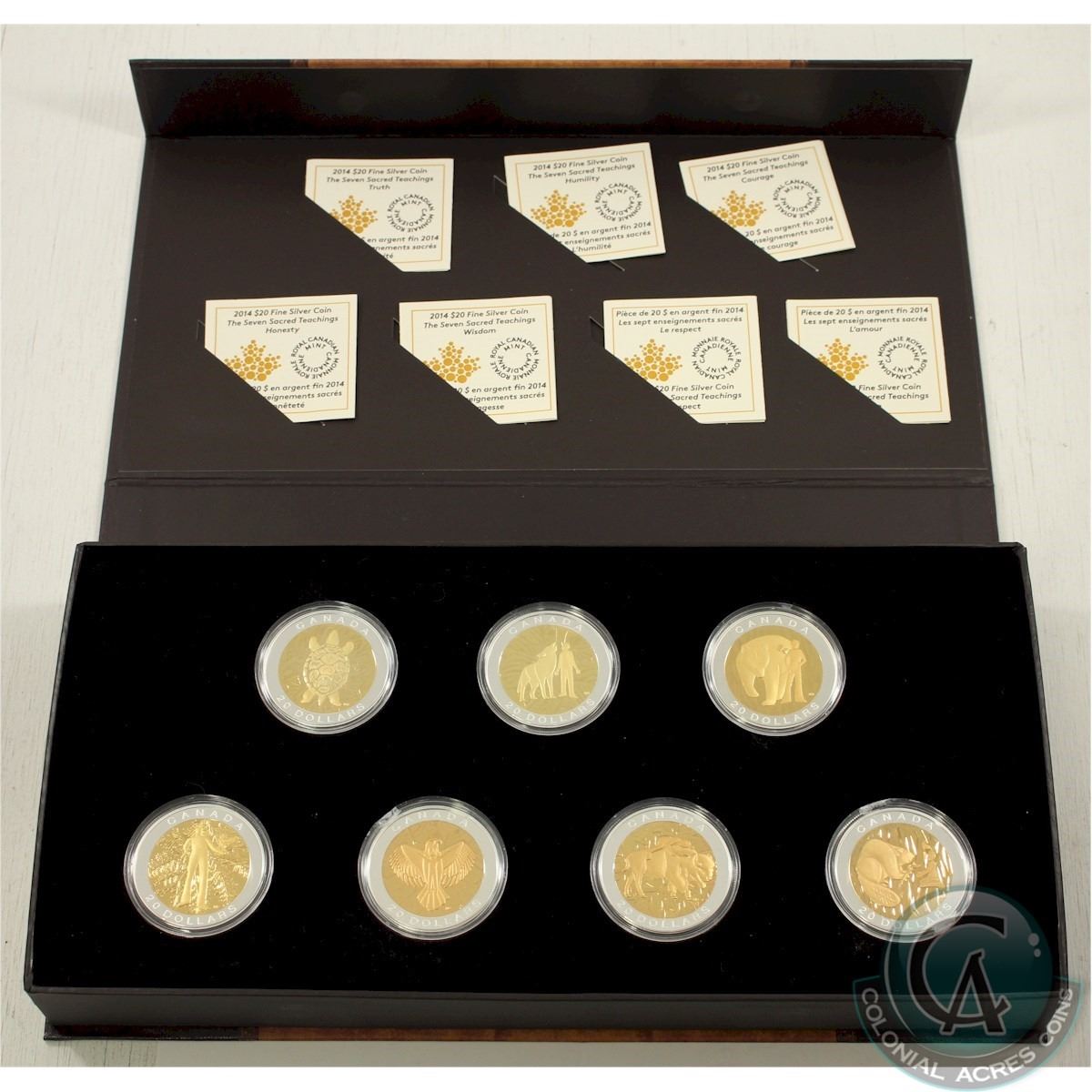 RCM Issue; Complete 2015 $20 Seven Sacred Teachings 7-coin set with Deluxe Box & COA's (Tax Exempt). Please note 2 capsules are damaged.