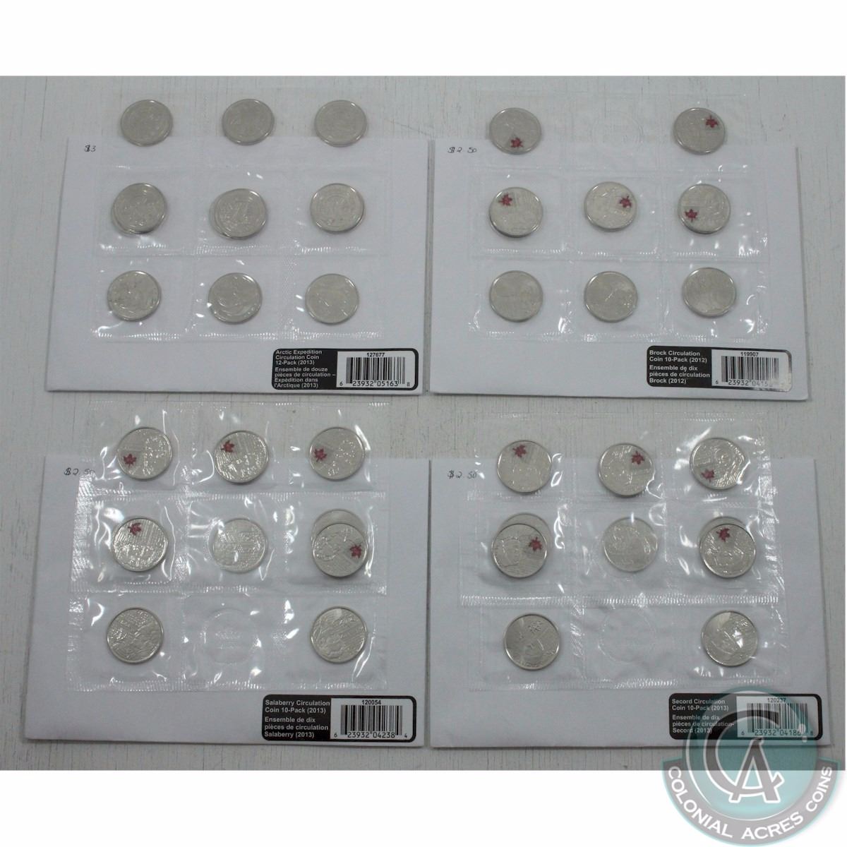 RCM Issue: Lot of 4x 2012-2013 Canada Circulation Packs. This lot includes the 2013 Sir Issac Brock 10-pack, 2013 Salaberry 10-pack, 2013 Laura Secord 10-pack, and the 2013 Arctic Expediton 12-pack (4 sets)