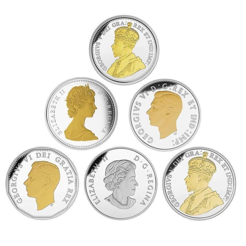RCM Legacy of The Nickel -2015 Fine Pure Silver 6 Coin Set - The Two Maple Leaves 5 Cent Coins w/ 24kt Gold Overlay. Wood Display case - 190.98 Grams ASW - SOLD OUT