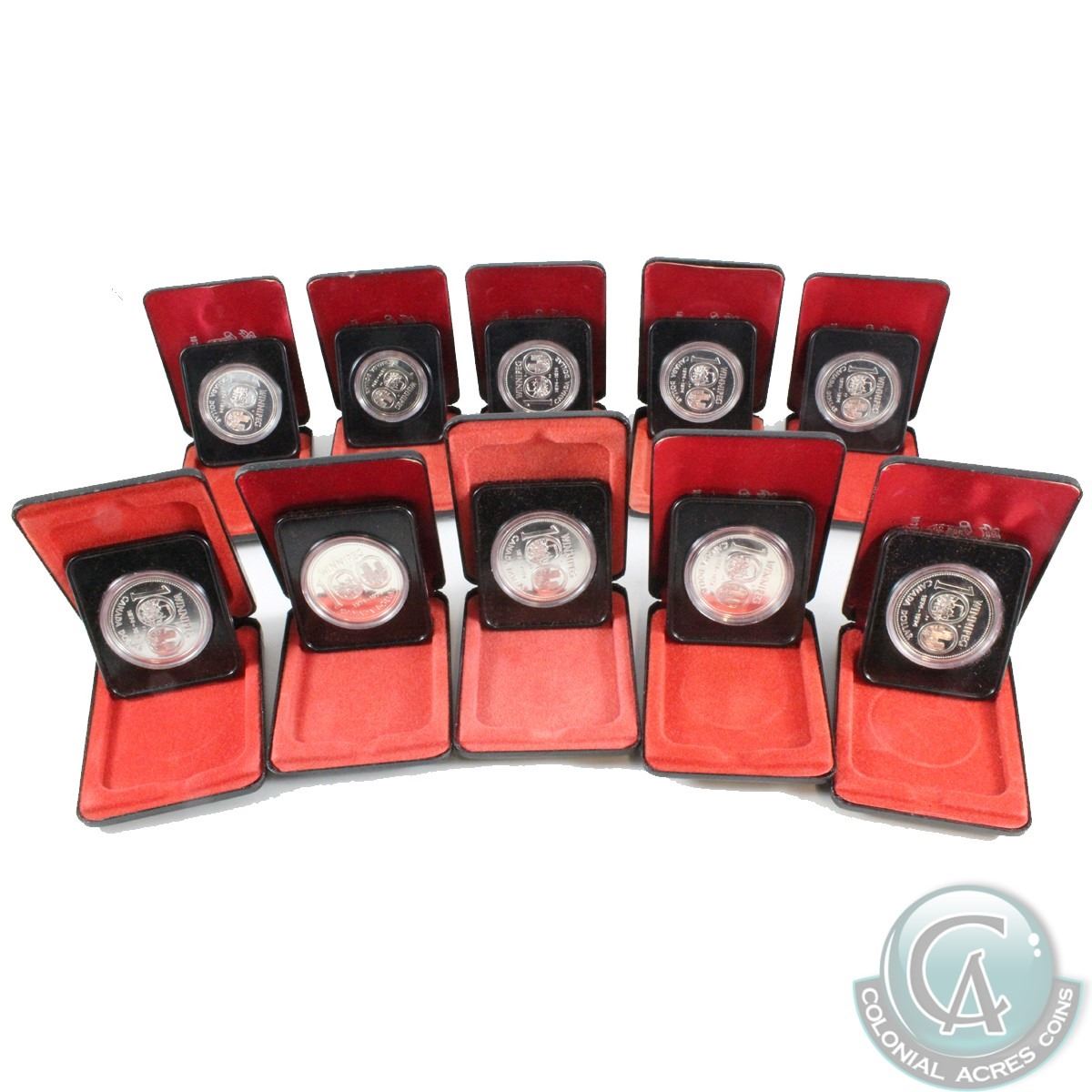 RCM Lot: 10x 1974 Commemorative Specimen Silver Dollars, Commemorating the 100th Anniversary of Winnipeg's Establishment. Some coins contain natural toning. All coins come encapsulated in black clamshell display cases (10pcs)