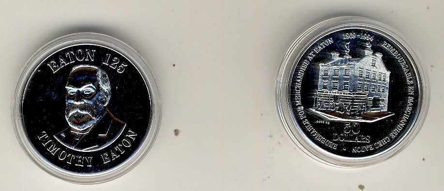 RCM Lot; 1869-1994 Eaton 125, 50 Dollar Pure Silver; 2 coins.