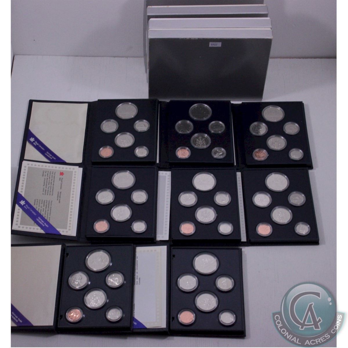 RCM Lot: 1981-1987 6-coin Canadian Specimen Sets. The years included in this lot are: 1981, 1982, 1983, 1984, 1985, 2x 1986, and 1987. Coins with original MInt packaging (some of the capsules are lightly scratched). (8pcs)