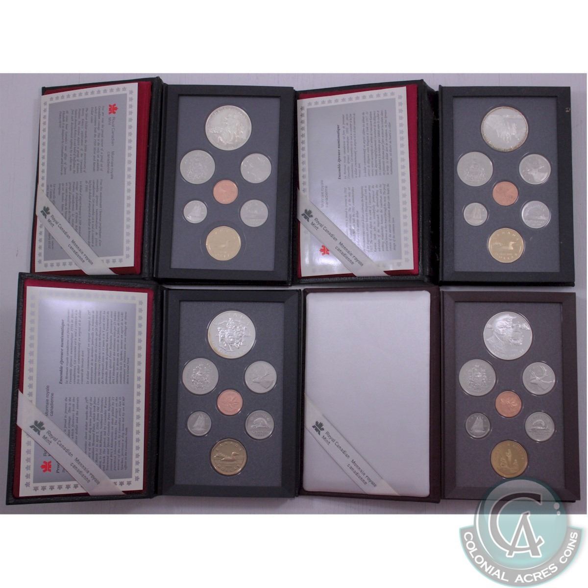 RCM Lot: 1990-1995 Canada Proof Double Dollar Sets. Included are the 1990, 1992, 1994 and the 1995 L
