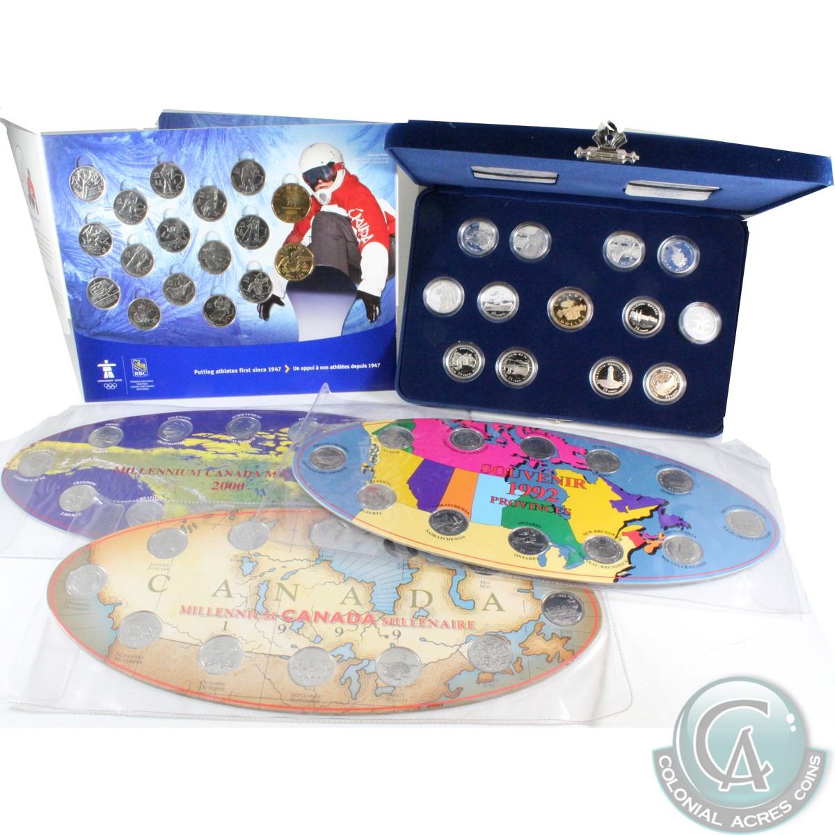 RCM Lot: 1992 Canada 125th Anniversary 13-coin Proof Set With 1992, 1999, 2000 and 2010 Commemorative 25-cent display folders with coins. (5pcs)