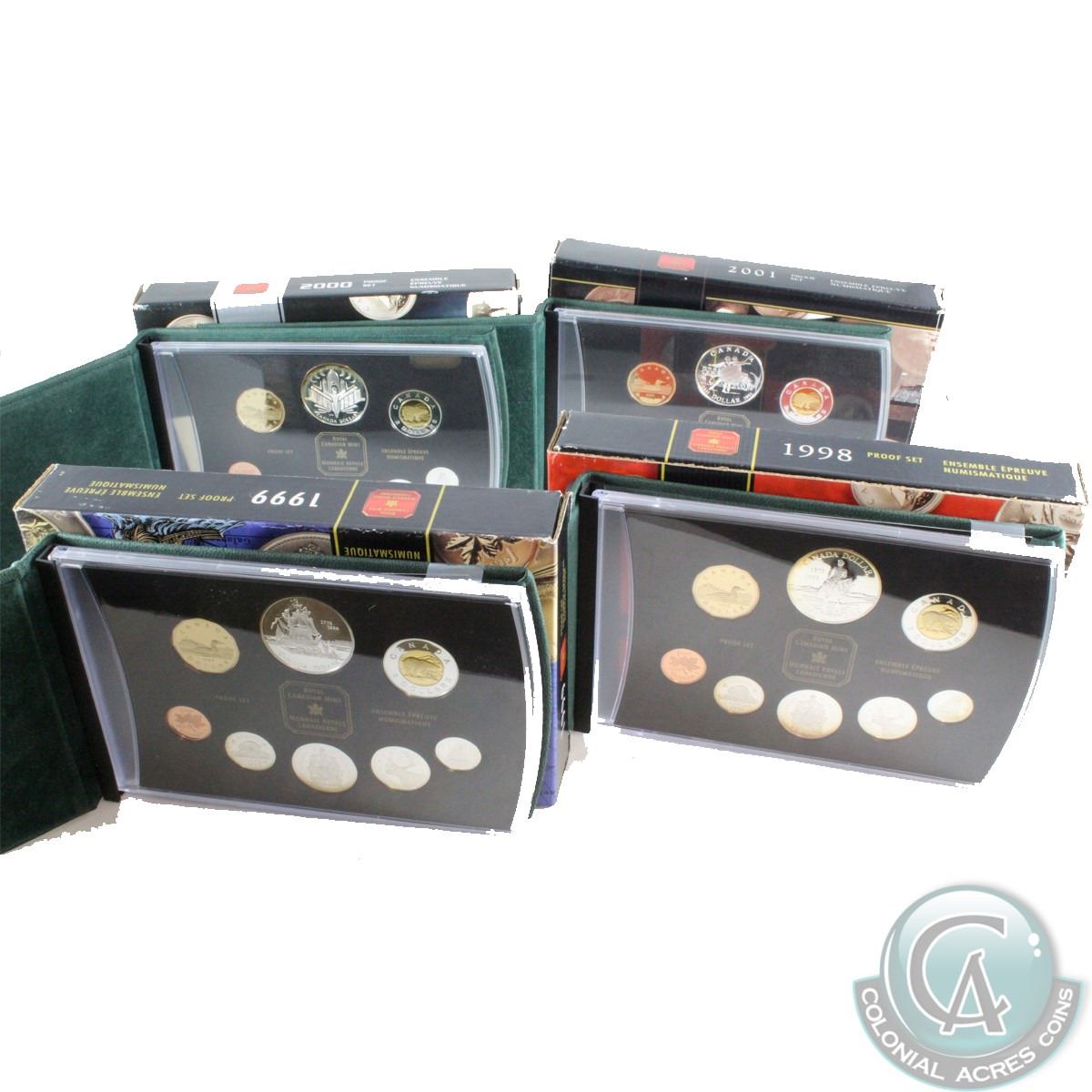 RCM Lot: 1998, 1999, 2000 and 2001 Canada Proof Commemorative Double Dollar Sets. Sets come with all their original mint packaging and coins contain some natural toning (4 sets)