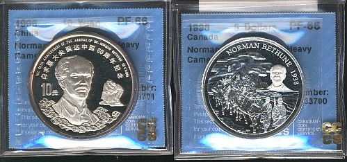 RCM Lot; 1998 $5,00 Bethune RCM and 10 Yuan Bethune CGCI form set made by Canadian Mint and China Mint both coin are CCCS PF-66 Ultra Heavy Cameo.