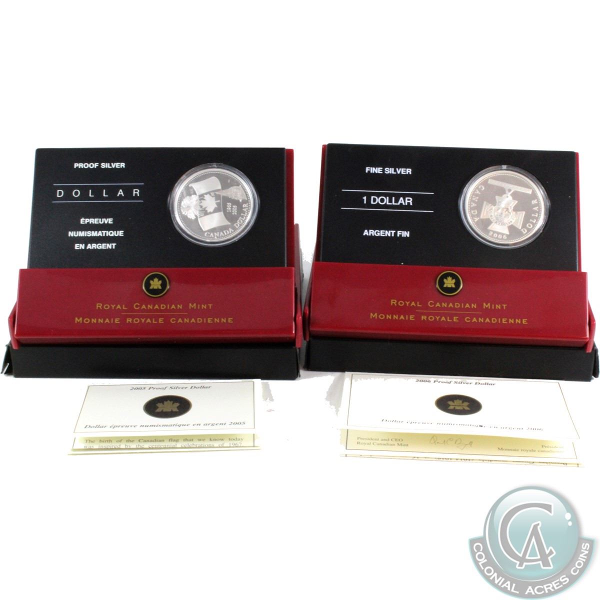 RCM Lot: 2005 & 2006 Canada Commemorative Proof Silver Dollars. ( 2pcs)