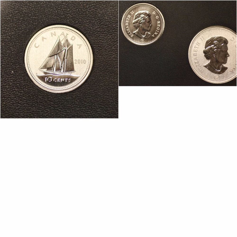 RCM Lot 2010 Mule Specimen Set! This set features the Commemorative Lynx $2 coin. The Mule is on the 10-cent coin that has been struck with a Specimen finish in Reverse and an Proof-Like Finish on the Obverse. Set comes in all original packaging.