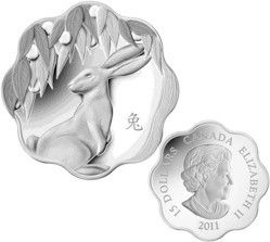 RCM Lot; 2011 $15 Lunar Lotus - Year of the Rabbit (2nd in series) .