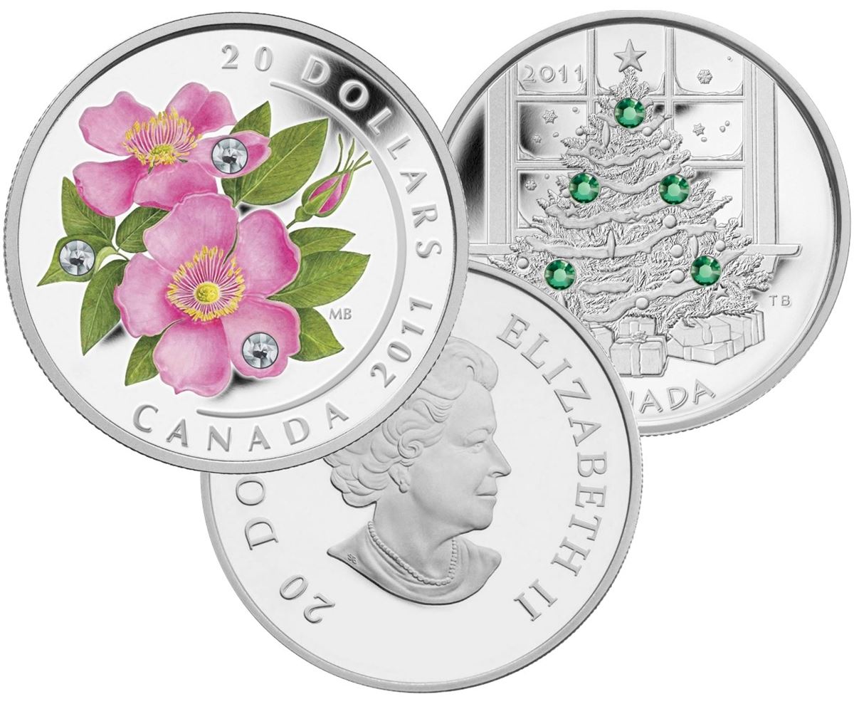 RCM Lot; 2011 $20 Christmas Tree & Rose issues. Lot of 2 coins both in original packaging. Tax Exempt.