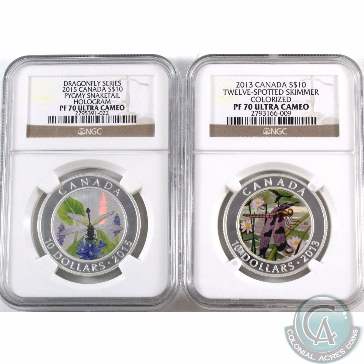 RCM Lot: 2013 Canada $10 Twelve Spotted Skimmer & 2015 Canada $10 Pygmy Snaketail NGC Certified PF-70 Ultra Cameo (TAX Exempt) 2pcs