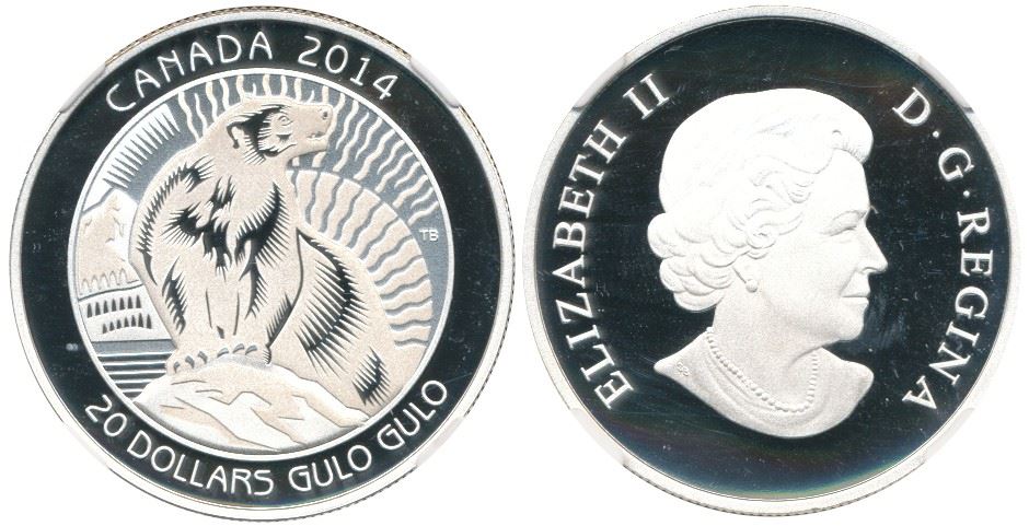 RCM Lot; 2014 $20 Untamed Canada Series - Wolverine, NGC PF70 Ultra Cameo.
