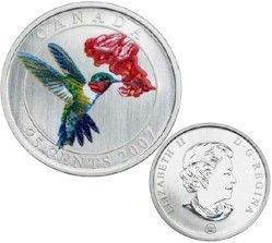 RCM Lot; 25 cents coin; Bird of Canada Series; 2007 Ruby-throated Hummingbird in original casing with COA and boxes.