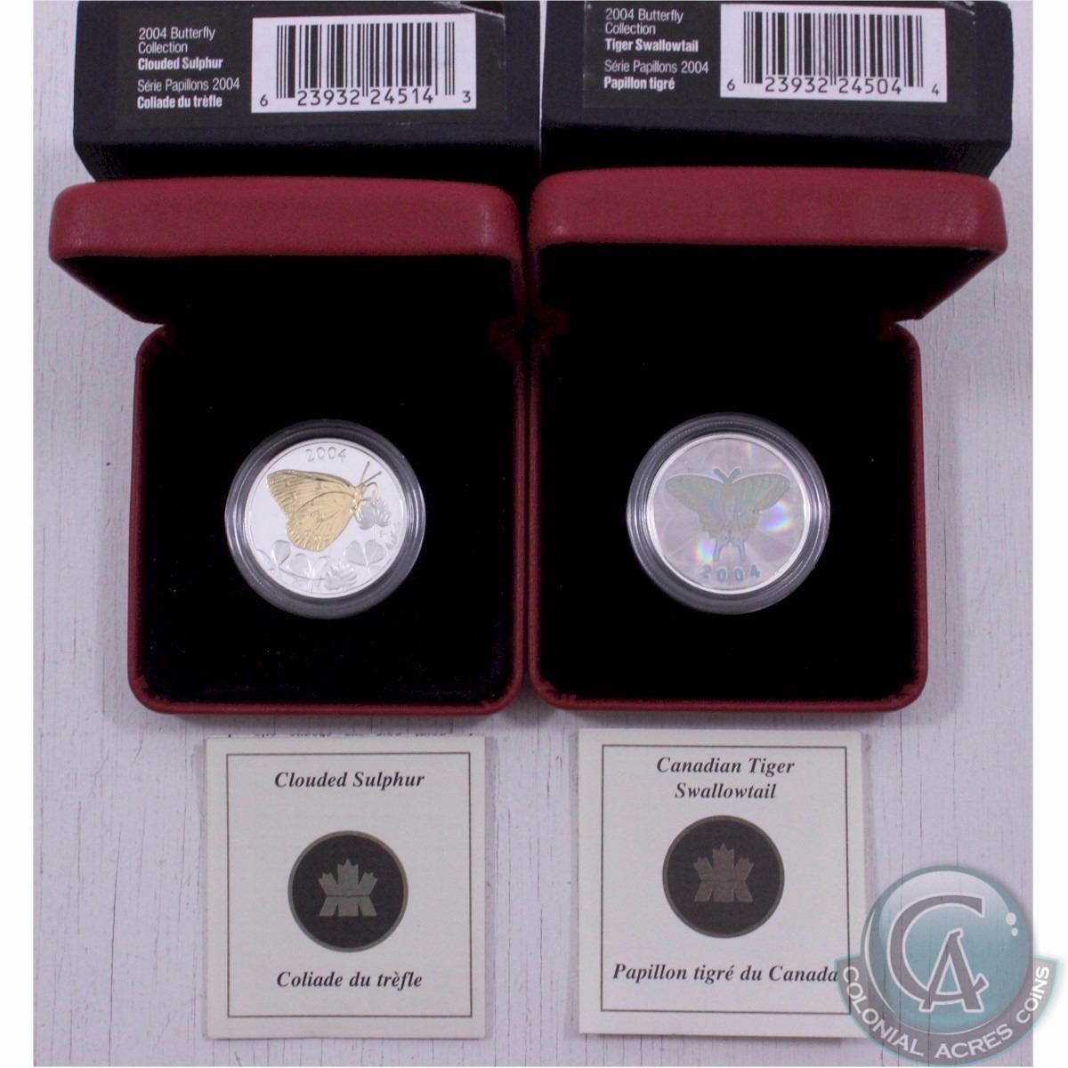 RCM Lot: 2x 2004 Canada 50-cent Hologram Tiger Swallowtail & 2004 50-cent Clouded Sulphur Butterfly Sterling Silver Coins. 2pcs
