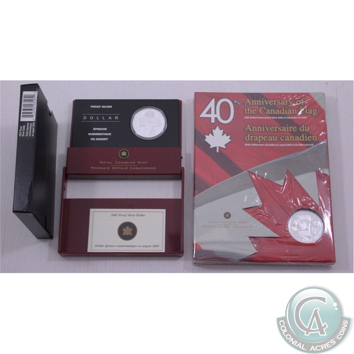 RCM Lot: 2x 2005 Canada Commemorative Proof Silver Dollar & 2005 Brilliant Uncirculated Silver Dollar with Interactive CD-Rom (TAX Exempt) 2pcs