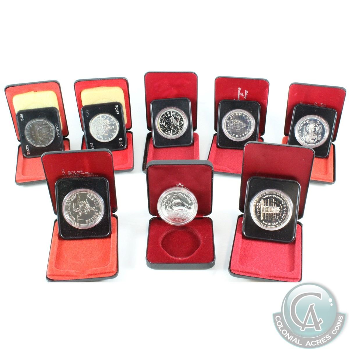RCM Lot; Cased Silver Commemorative Dollars from 1972 to 1979. 8pcs.