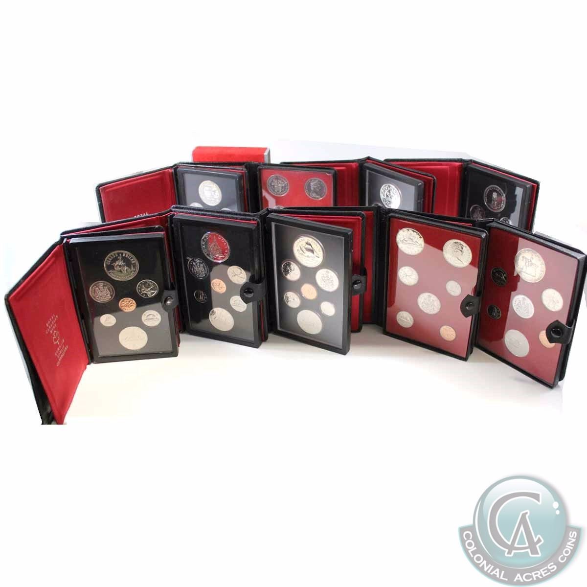 RCM Lot: Complete set of 1971-1979 Canada Proof Double Dollar Sets. These sets comes in their Original Mint folders (some coins in these sets contain some natural toning and some of the inner felt is disturbed). 9 sets.