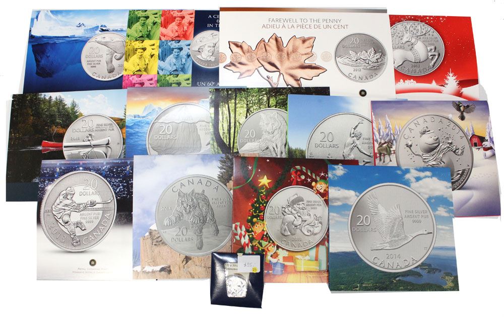 RCM Lot; First 14-coin run of Canada $20 for $20 Coins in original folders. No Tax